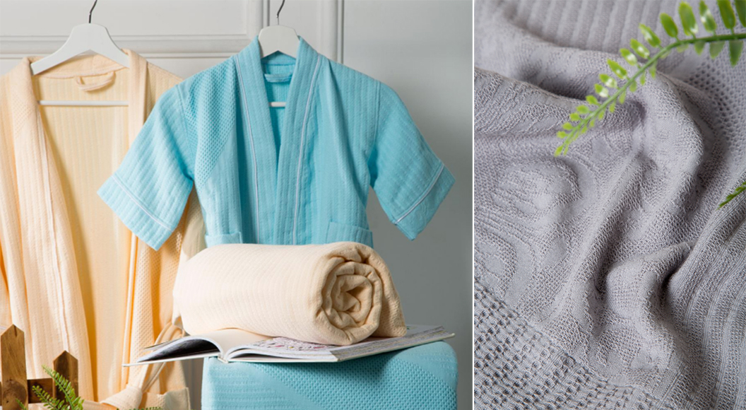 專家點評:利用毛巾藝術的棉生活,在毛巾傳統基礎上,提升了工藝制造線條的美,又有提花的圖案,還有蜂窩織造工藝,還利用古文化的陶瓷工藝,青花瓷的圖案,能結合到毛巾上去,體現了毛巾產品有藝術性、創造性,提升了毛巾的舒適性,可稱得上毛巾的皇中皇。作品有排列有序的連續紋樣,有突出主題的單獨紋樣,一種顏色,幾筆花紋,成就了毛巾藝術的傳世美名,也讓我們驚嘆古人這流傳千年的藝術,因此使生活用品的毛巾、浴巾、睡衣、毛巾被既有吸潮性、柔軟性、透氣性,更具有高級的享受藝術之美!
