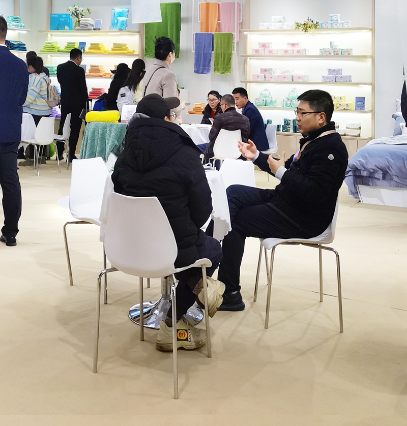 展會(huì)首日,中國(guó)紡織工業(yè)聯(lián)合會(huì)副會(huì)長(zhǎng)楊兆華等行業(yè)協(xié)會(huì)領(lǐng)導(dǎo)及嘉賓到孚日展館參觀,孚日集團(tuán)品牌運(yùn)營(yíng)總負(fù)責(zé)人孫浩博、孚日集團(tuán)技術(shù)質(zhì)量總監(jiān)張?jiān)诔蔁崆榻哟蚋魑活I(lǐng)導(dǎo)及嘉賓詳細(xì)介紹集團(tuán)最新科技產(chǎn)品及研發(fā)成果,示范產(chǎn)品功能,交流市場(chǎng)發(fā)展方向,探討消費(fèi)者當(dāng)下及潛在需求。孚日集團(tuán)市場(chǎng)部總監(jiān)宮凱參與展會(huì)主辦方舉辦的“技術(shù)最前線”主題論壇活動(dòng),該活動(dòng)匯聚了國(guó)內(nèi)業(yè)界精英和專家,共同探討行業(yè)發(fā)展趨勢(shì)和技術(shù)前沿動(dòng)態(tài)。